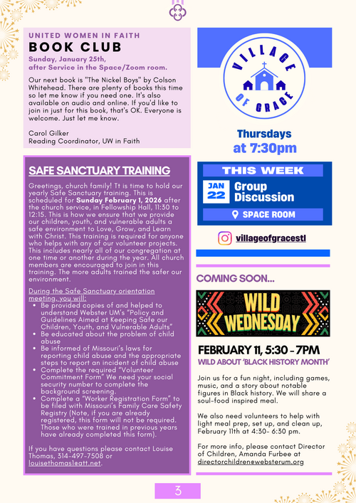 Safe Church Training: Contact - Louise Thomas, louisethomas1@att.net